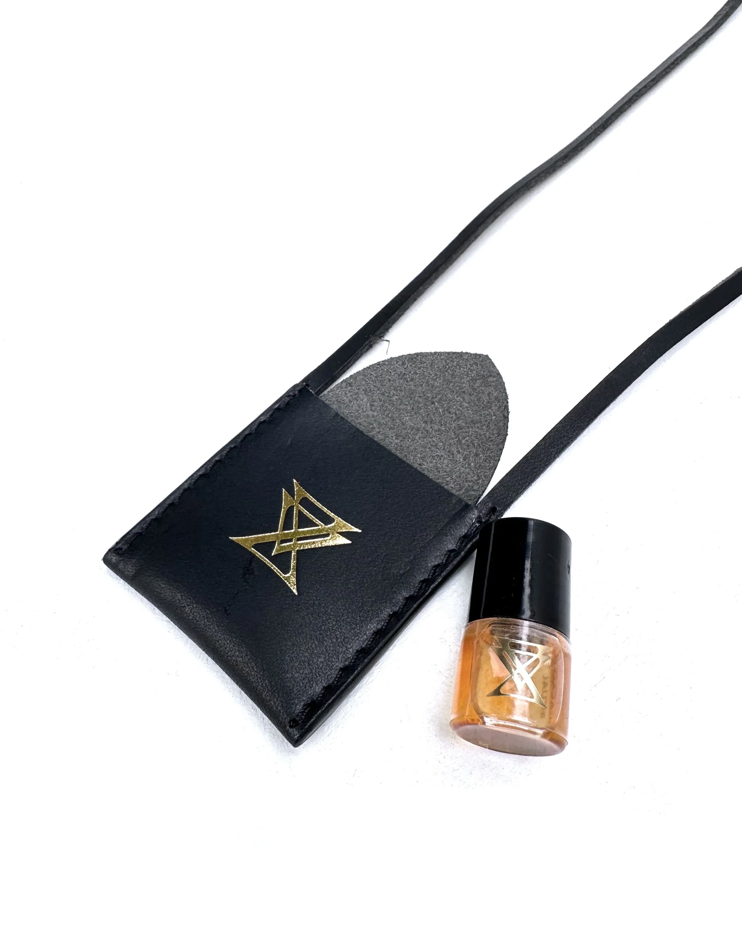 Choose your favourite fragrance form our acclaimed Forbidden Botanica Collection in a sexy portable roll-on 1ml bottle nestled in a Black Calf Tuscan Leather Necklace made by our Florentine artisans and gold stamped.